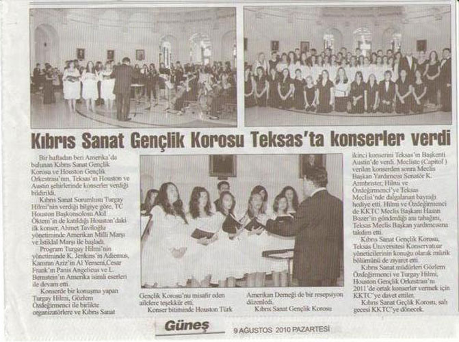 Kıbrıs Sanat Gençlik Korosu Texas'ta konserler verdi