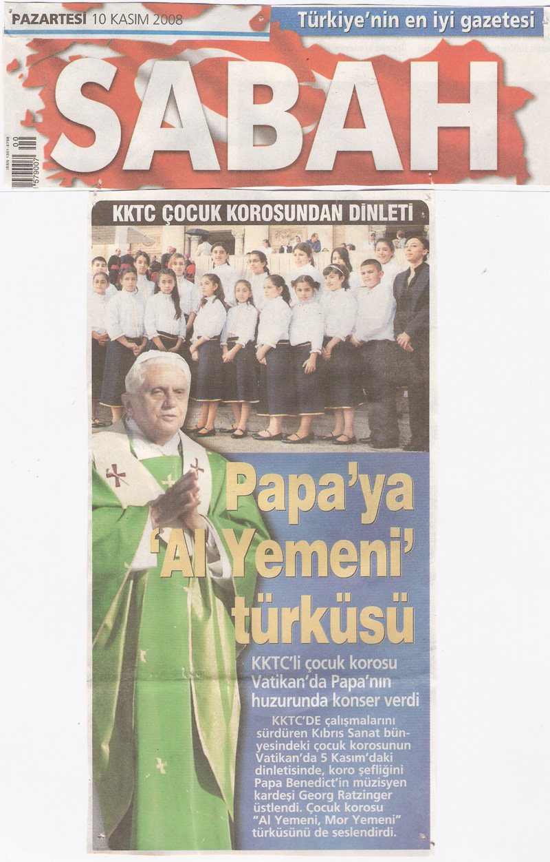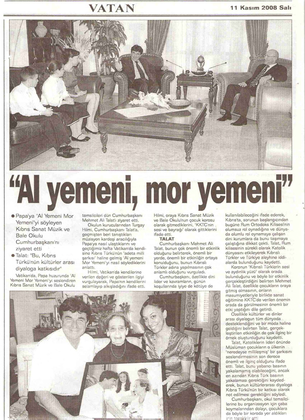 Papa'ya Al Yemeni Mor Yemeni'yi söyleyen Kıbrıs Sanat, Cumhurbaşkanını ziyaret etti.