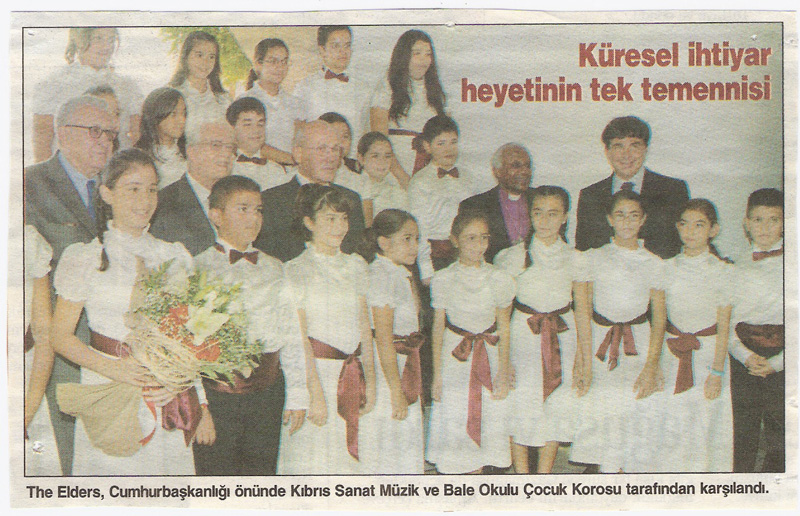 The Elders, Cumhurbaşkanlığı önünde Kıbrıs Sanat Çocuk Korosu tarafından karşılandı.